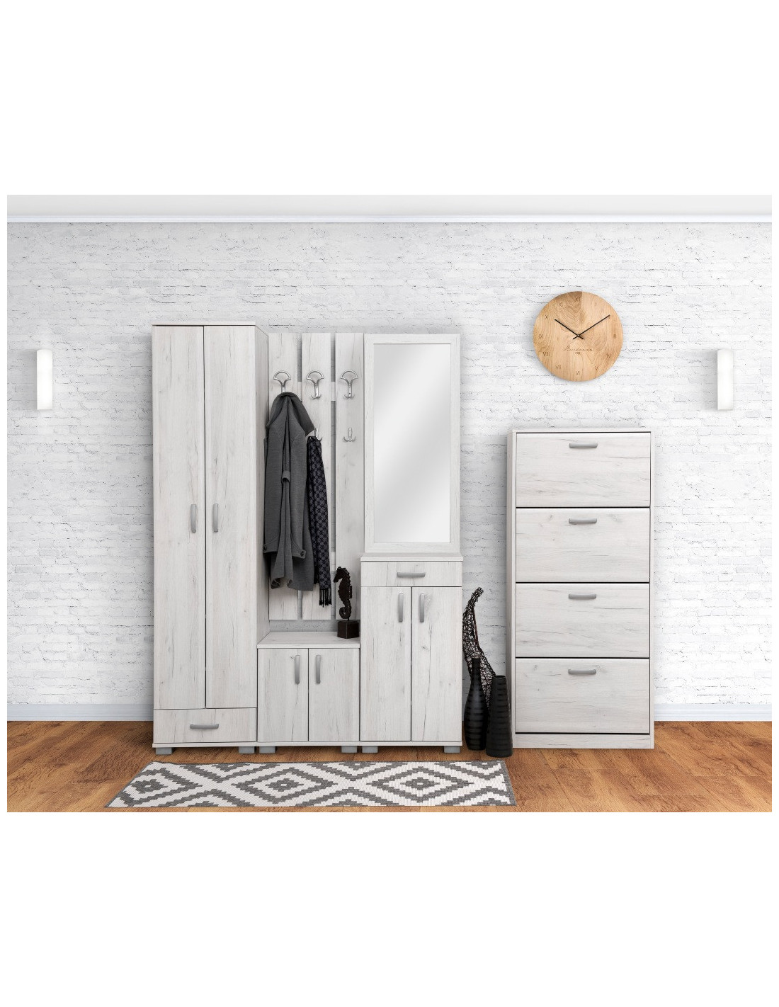 Predsoblje Apollon PA1 dio je seta predsoblja APOLLON, modernog dizajna i idealnih dimenzija. Ormar sadrži jednu vješalicu za odjeću i poprečne police koje se mogu pomicati na određenu visinu prema vašim potrebama, kao i ladicu za odlaganje stvari na dnu samog elementa.