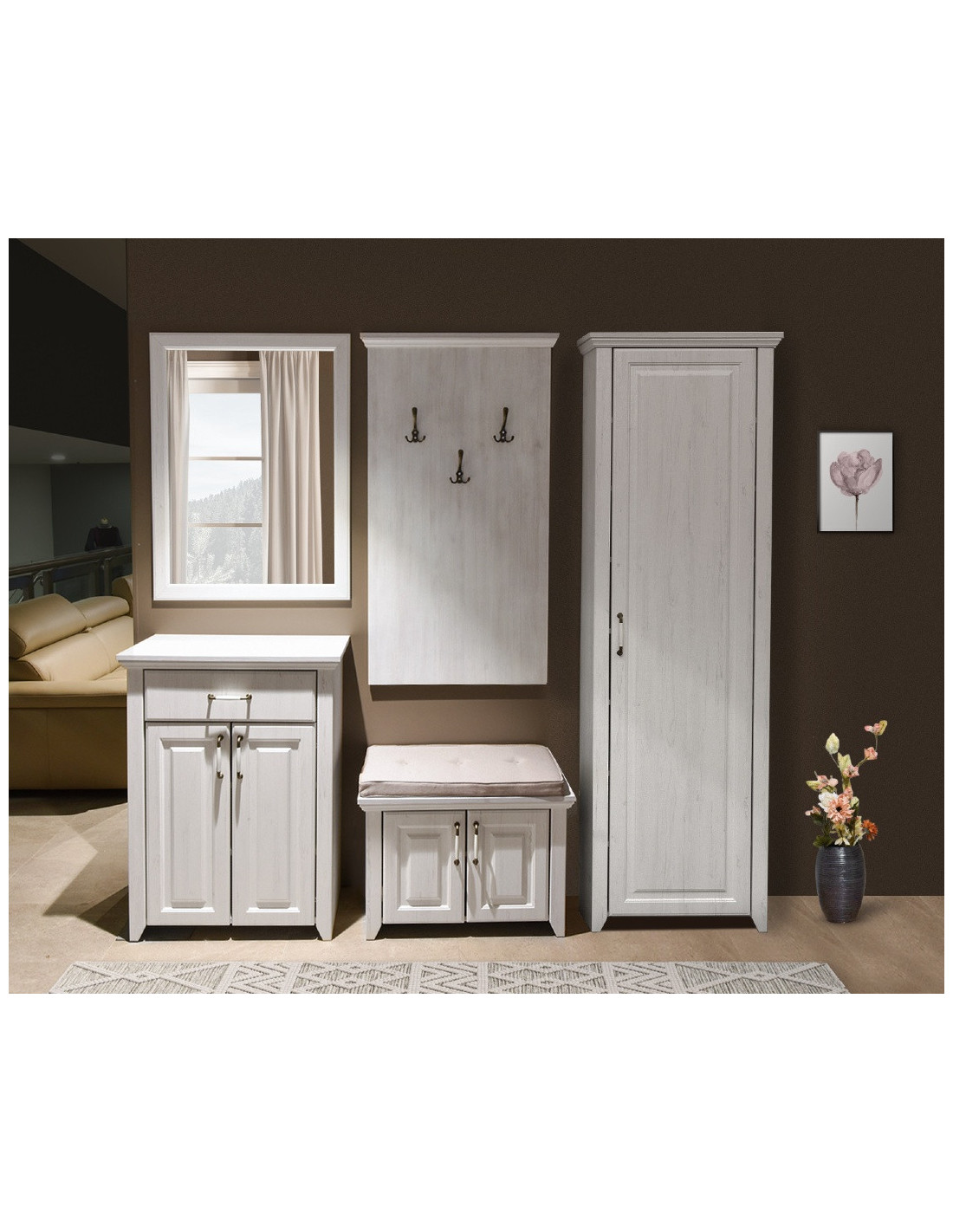 Ormar Rustik elegantan je komad namještaja dimenzija 66,5x40,6x209 cm, idealan za organizaciju vašeg hodnika. Unutrašnjost ormara pametno je podijeljena na 7 polica, što vam daje puno prostora za pohranu raznih predmeta poput cipela, torbi, kišobrana i ostale opreme. Ovaj rustikalni ormar kombinira stil i funkcionalnost, stvarajući impresivan i uredan izgled vašeg ulaza. Svojim čistim linijama i kvalitetnim materijalima, rustikalni ormar dodat će šarm i organizaciju vašem prostoru kako bi vas dočekao u vašem domu. Usporivači omogućuju tiho i jednostavno zatvaranje vrata, što sprječava oštećenje namještaja, a istovremeno doprinosi duljem vijeku trajanja. Ručke izrađene od kombinacije drva i metala pružaju otpornost na habanje, a dodatno estetski doprinose rustikalnom izgledu ormara.