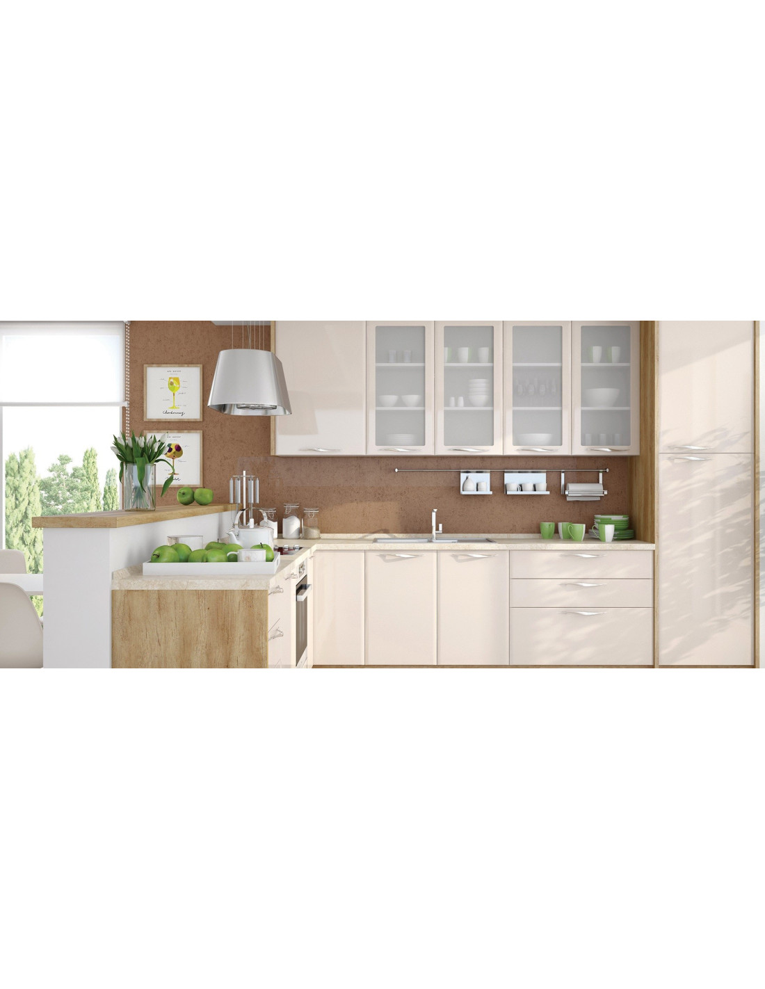 Kuhinja Modern sa frontovima od medijapana u Kašmir boji u visokom sjaju.