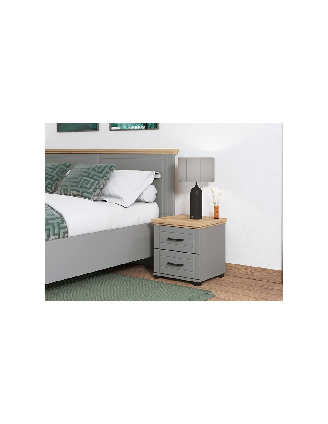 Valencia NO2F noćni ormarić u prostor unosi suptilniju, monokromatsku notu, estetski je privlačno i praktično rješenje za dodavanje u spavaću sobu. Prostor za korištenje sastoji se od dvije praktične ladice obogaćene crnim jednostavnim dizajnerskim ručkama, koje su u skladu s dizajnerskom linijom cijele kolekcije.