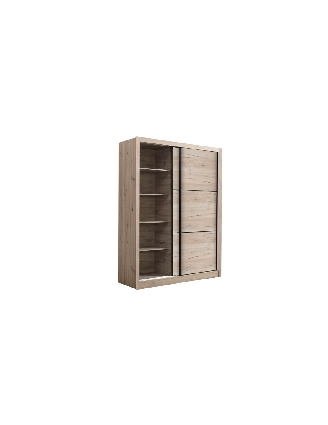 Ormar NAVARA 165 u boji hrasta sive boje, moderno je dizajniran i predstavlja praktično rješenje za pohranu. Unutrašnjost se sastoji od segmenta s policama u lijevom dijelu i segmenta s prečkom za garderobu u desnom dijelu. Posebna prednost ovog modela je klizni mehanizam koji doprinosi ekonomičnoj organizaciji raspoloživog prostora. Dio je linije ormara NAVARA, pa je stilski kompatibilan s drugim modelima.