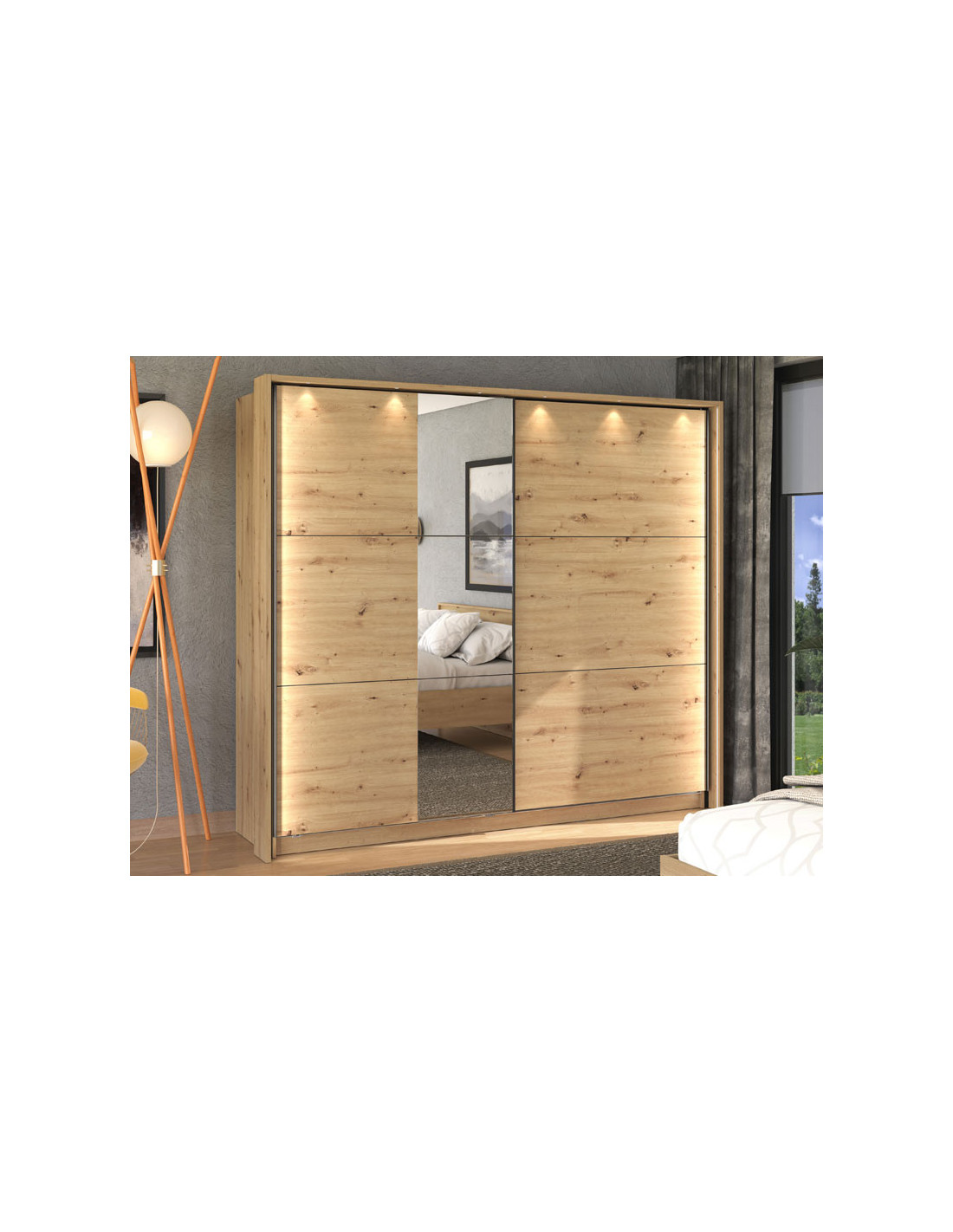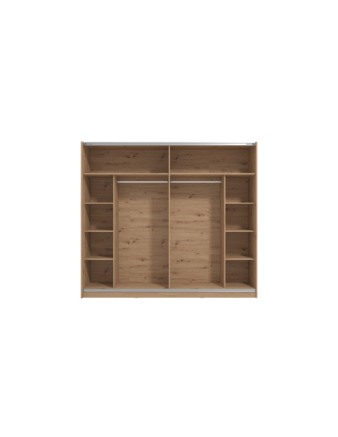 Ormar SIERRA 240 OG u dekoru artisan hrasta je model ormara sa suvremenim dizajnom i velikom praktičnom vrijednošću. Unutrašnjost se sastoji od segmenta s policama u lijevom i desnom dijelu, kao i segmenta s garderobnom šipkom u središnjem dijelu. Posebna prednost ovog modela je klizni mehanizam koji doprinosi ekonomičnoj organizaciji raspoloživog prostora, kao i ogledalo na polovici lijevog kliznog elementa, koje ima funkcionalnu i estetsku vrijednost. Ima mogućnost ugradnje usporivača u klizni mehanizam, što dodatno doprinosi sigurnosti i funkcionalnosti.