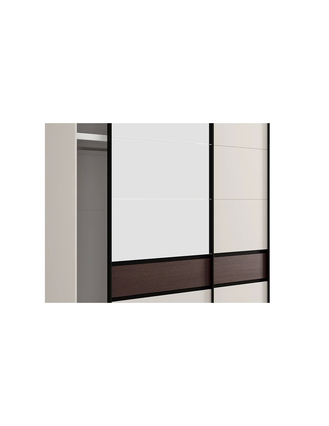 Ovaj model ormara s kliznim vratima ima ogledalo, što dodatno poboljšava funkcionalnost i vizualno proširuje prostor. U osnovnom obliku, iskoristivi prostor ormara sastoji se od dvije garderobne šipke, koje omogućuju pregledno i praktično skladištenje ormara.