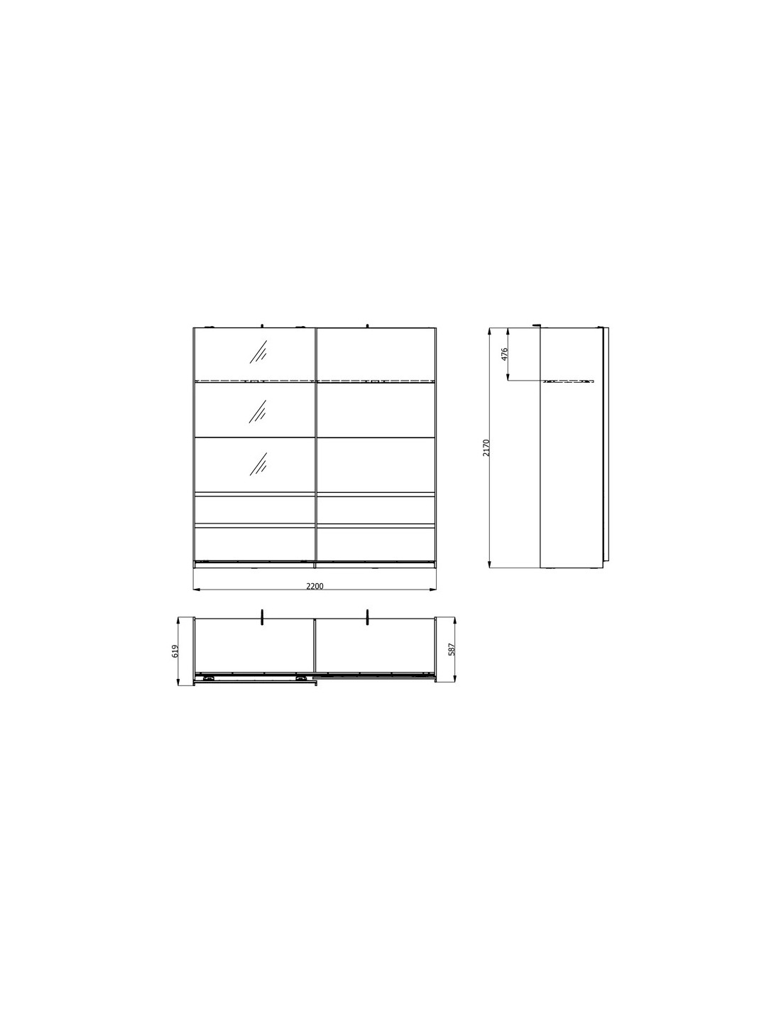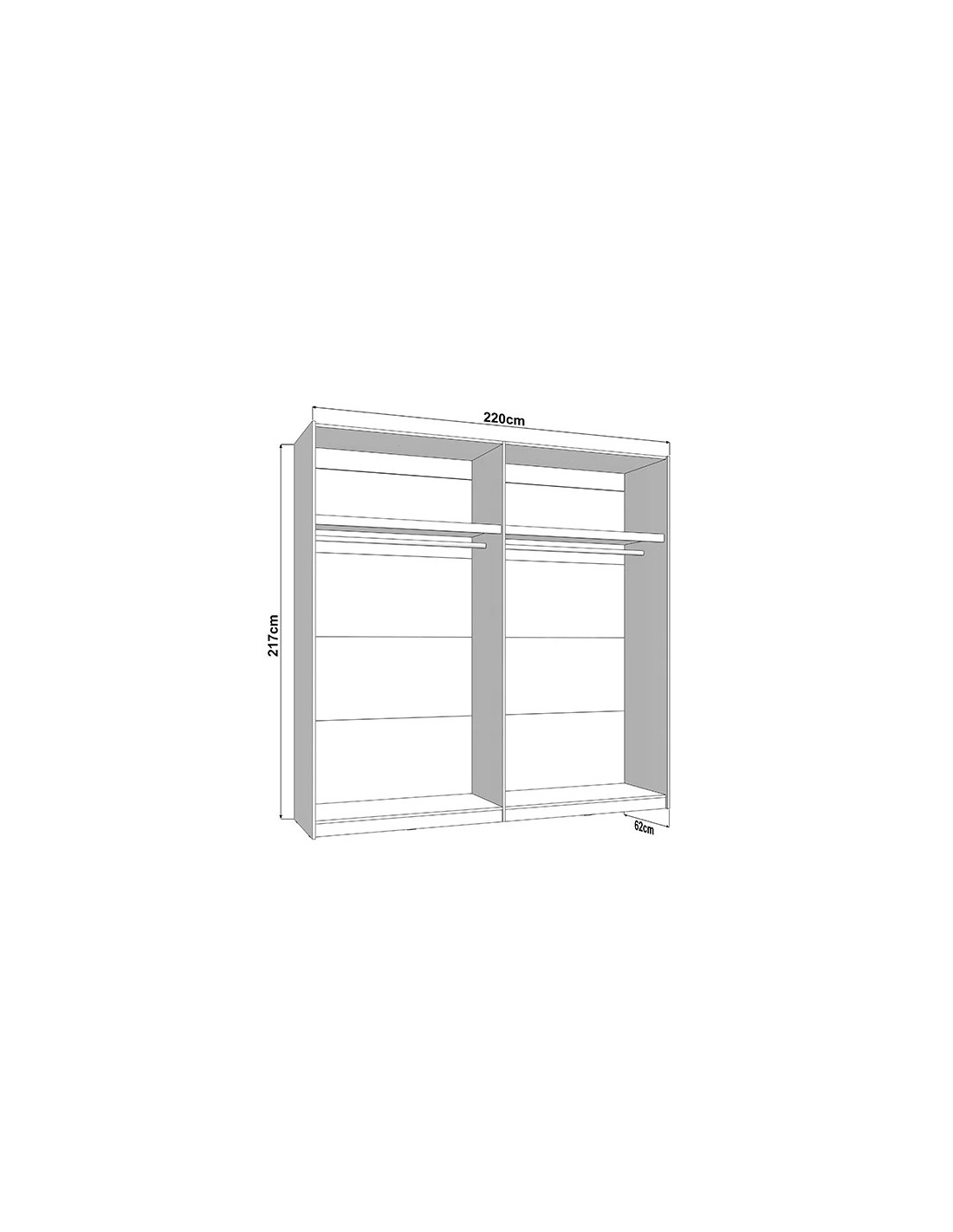 Š 220 cm / D 62 cm / V 217 cm