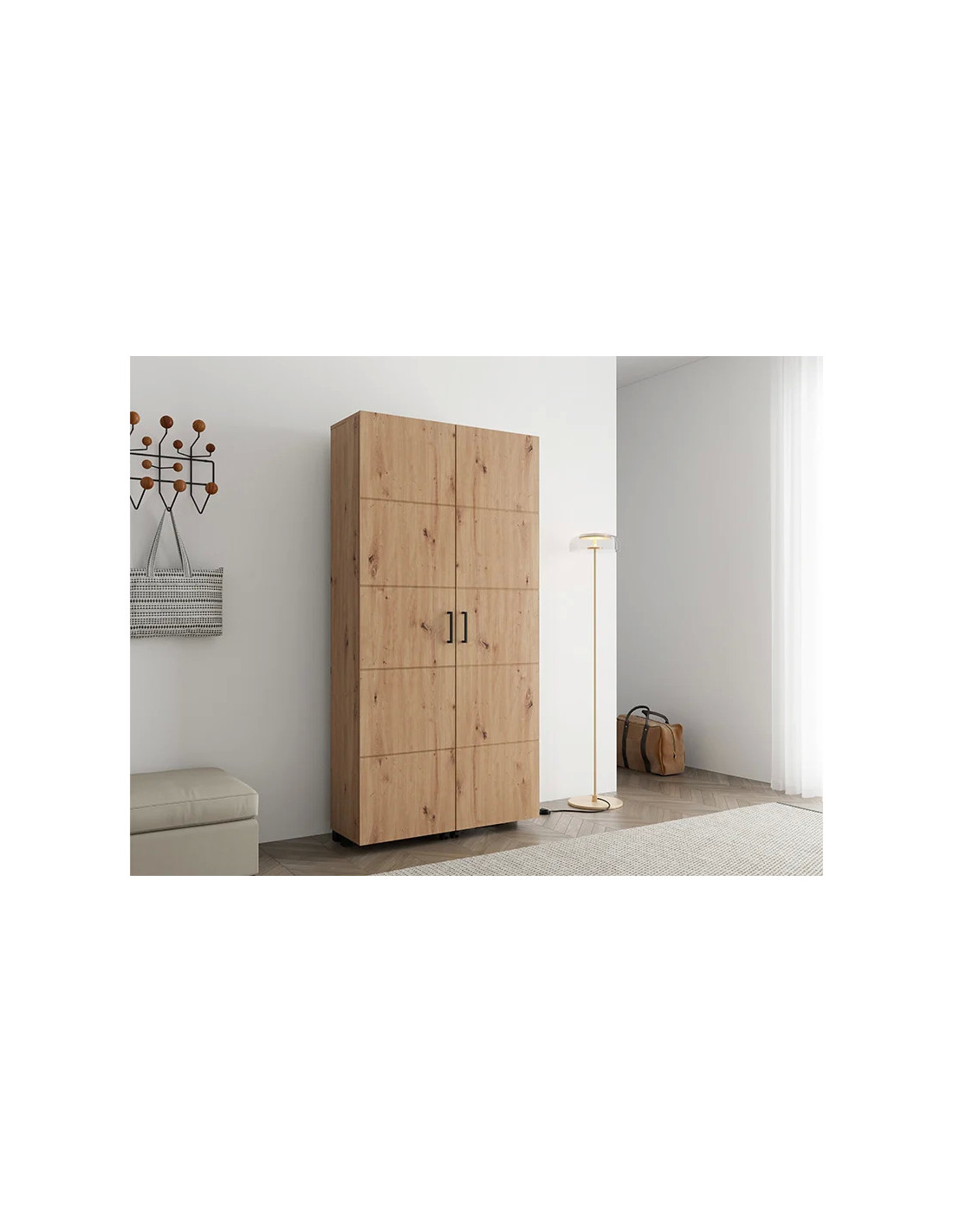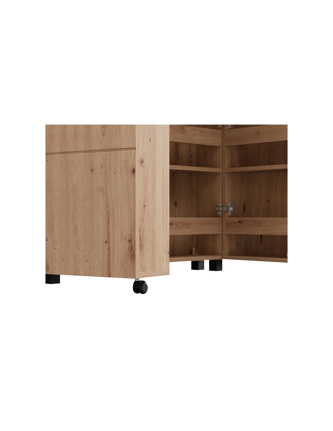 Cipelar ISLAY 91 h185, u boji artisan hrasta, praktično je i elegantno rješenje za hodnik. Unutrašnjost ovog jednokrilnog ormarića za cipele, poput komode sa zatvorenim policama, omogućuje preglednu i funkcionalnu organizaciju obuće.