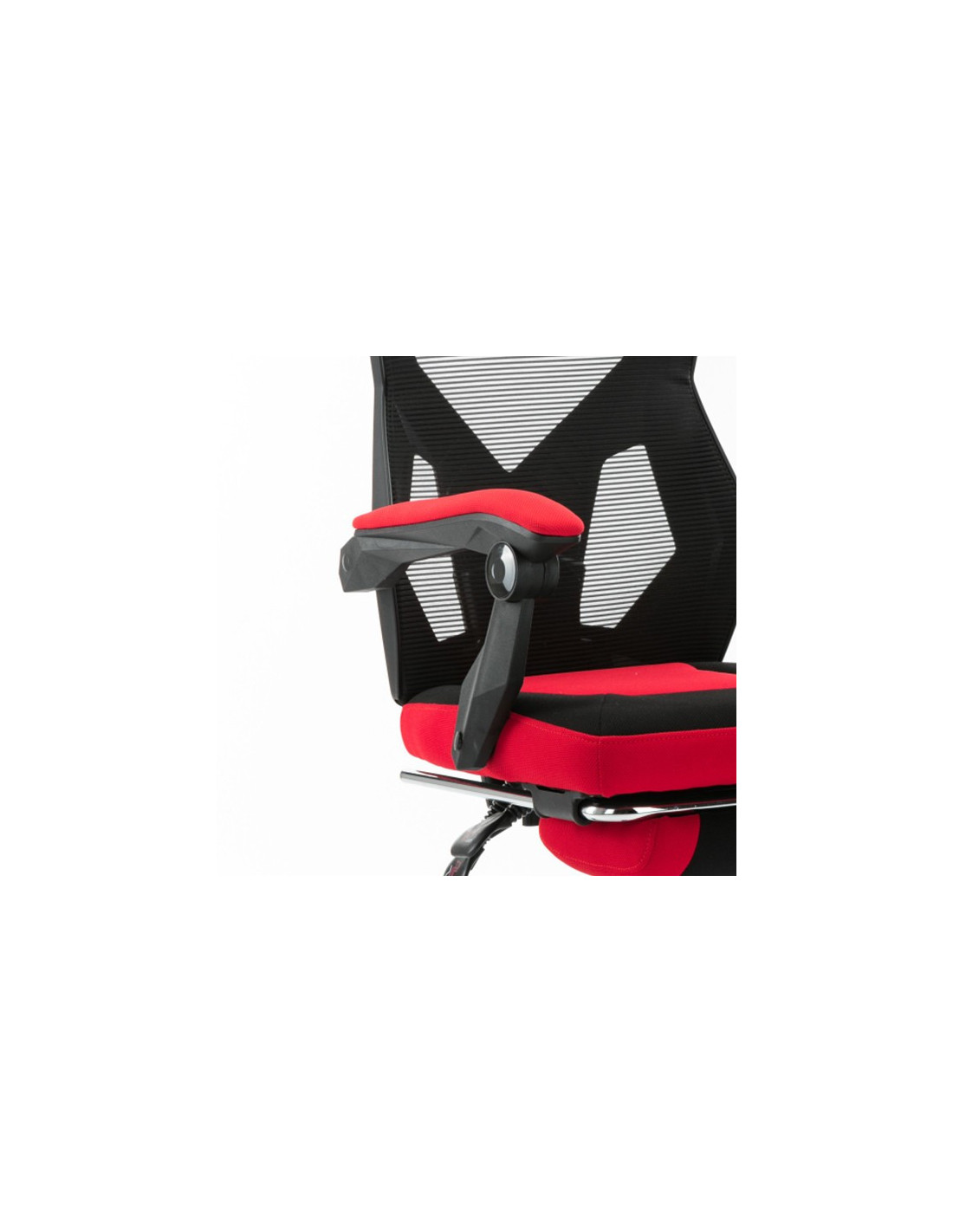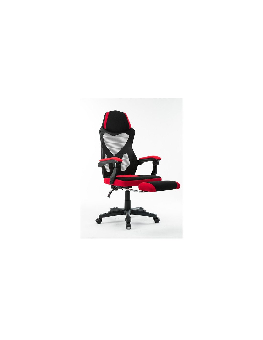 Moderna uredska stolica u stilu PC stolica. Tapecirana je kvalitetnom mrežicom u kombinaciji crne i crvene. Stolica je okretna i podesiva po visini. Ima naslon za noge koji se lako može spremiti ispod sjedala i koristiti po potrebi. Plastični nasloni za ruke su podesivi po visini i podstavljeni na vrhu. Sjedalo ima pjenu iznutra, što omogućuje udobno sjedenje. Stolica je obogaćena višenamjenskim mehanizmom. Baza stolice, crna, plastična je i ima 5 gumenih kotača.