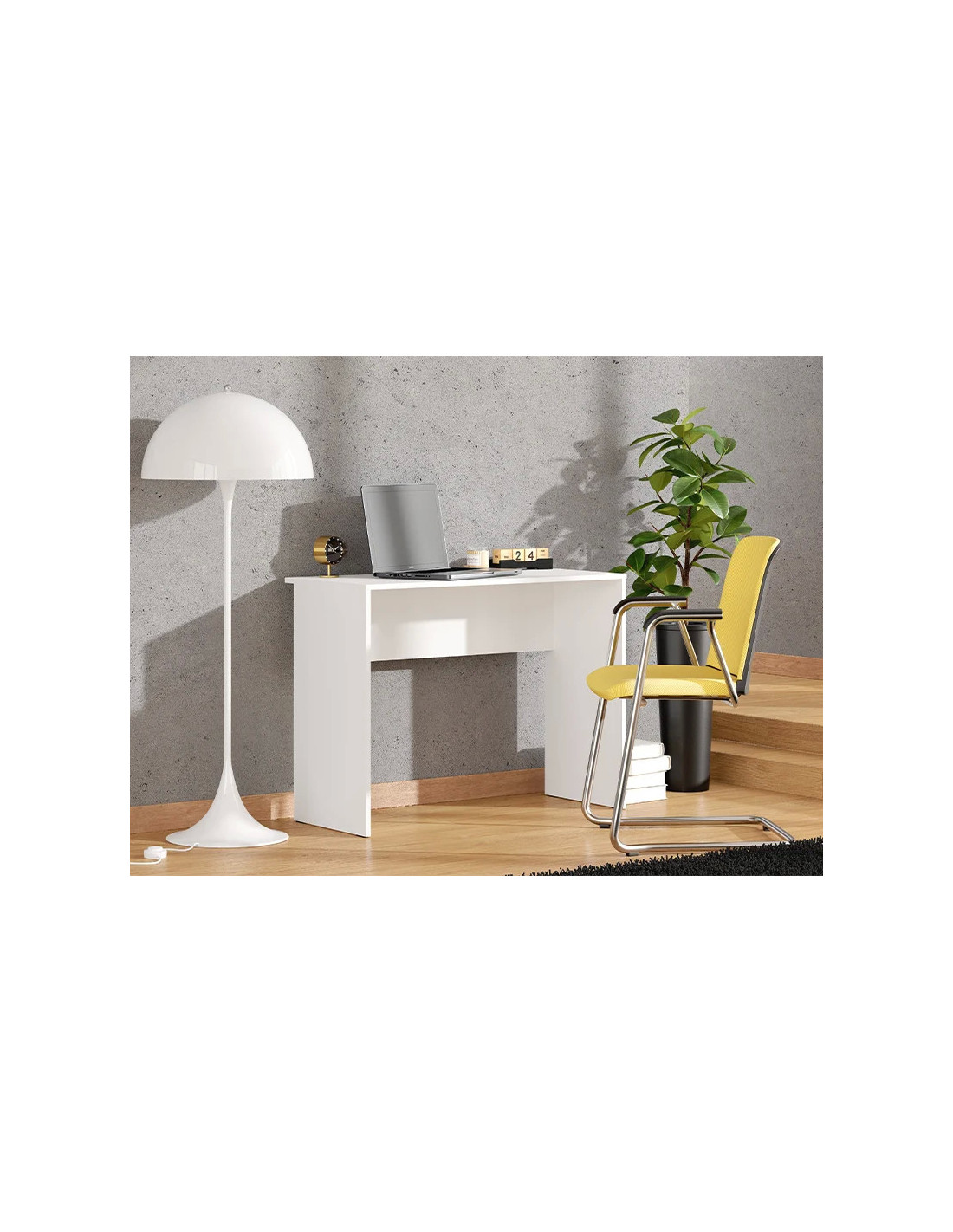 PC stol DIOFANT, u elegantnom bijelom dekoru, karakterizira minimalistički i moderan dizajn. Sastoji se od radne ploče i bočnih panela, što mu daje jednostavan, čist i funkcionalan izgled. Zahvaljujući kompaktnim dimenzijama i neutralnoj estetici, DIOFANT stol je neizostavan element za funkcionalno i pregledno uređenje radnog prostora.