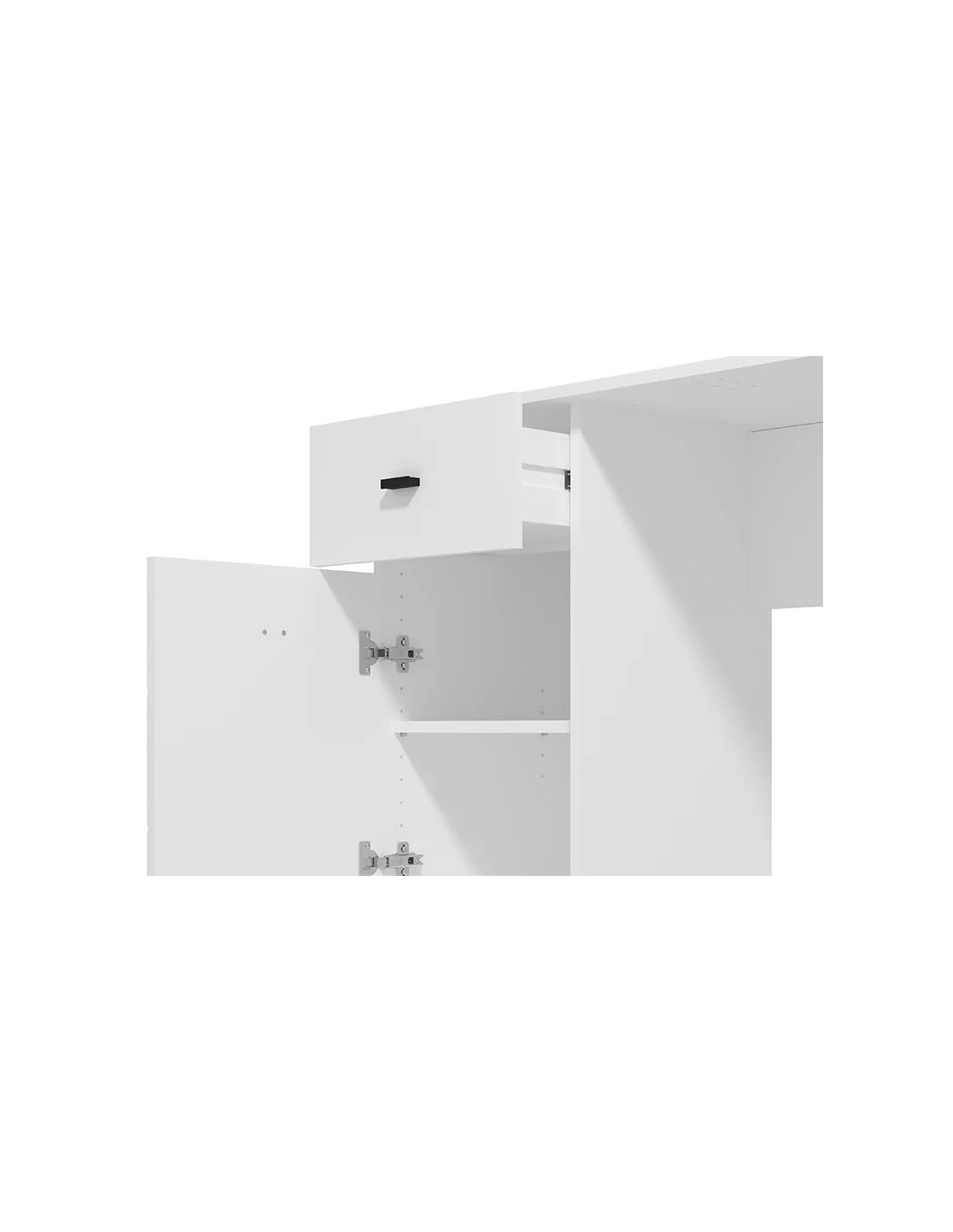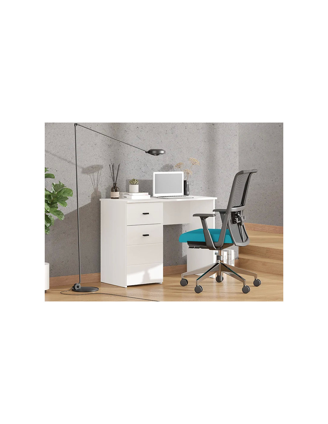 PC stol DIOFANT 1F1V, u bijeloj boji, odlikuje se minimalističkim i modernim dizajnom. Osim radne površine, iskoristivi prostor sastoji se i od manje ladice i pregrađenog zatvorenog dijela, koji omogućuju praktično skladištenje. Zahvaljujući kompaktnim dimenzijama i prirodnoj estetici dekora drva, stol DIOFANT 1F1V neizostavan je element za funkcionalno i pregledno uređenje radnog prostora.