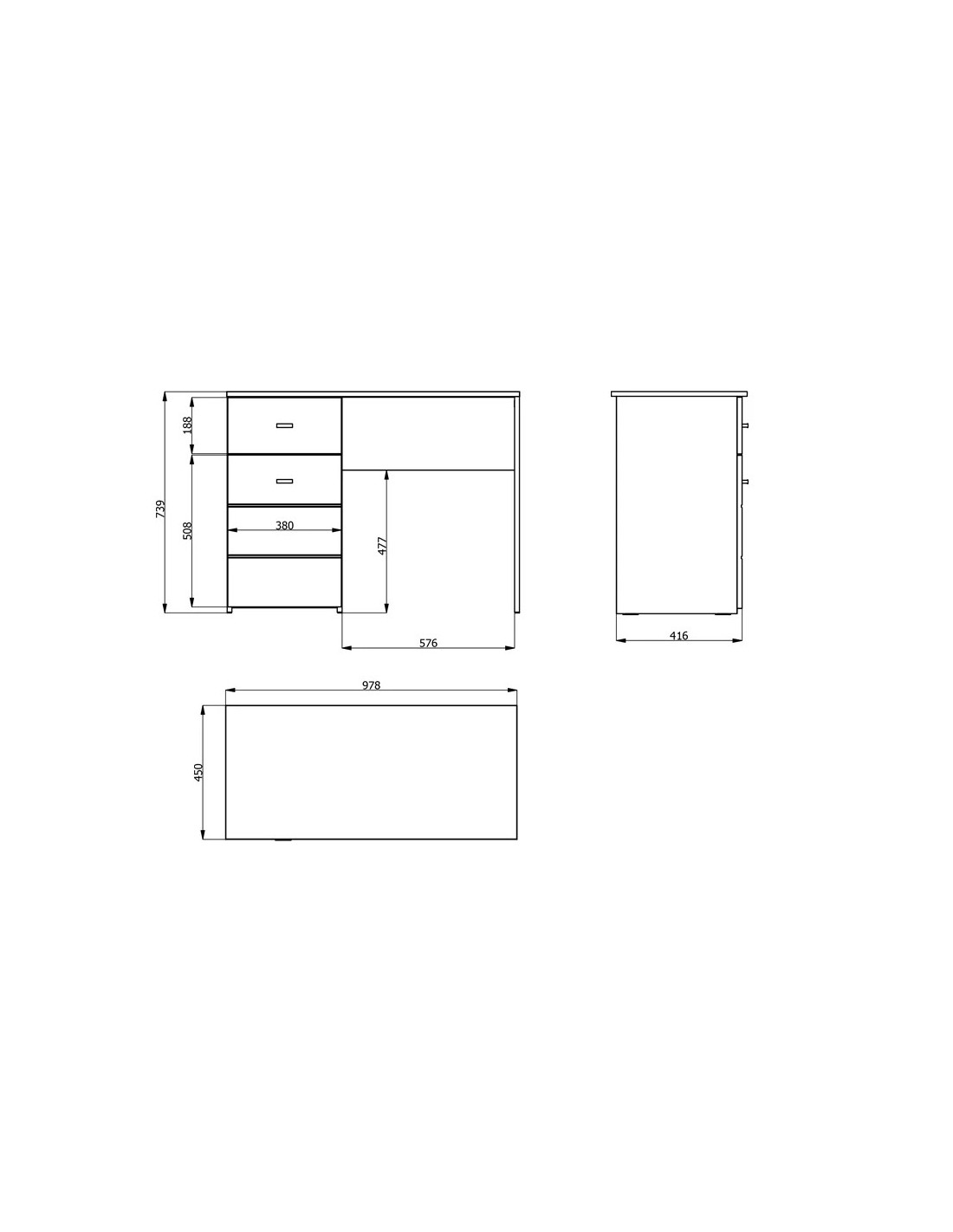 Š 98 cm / D 45 cm / V 74 cm