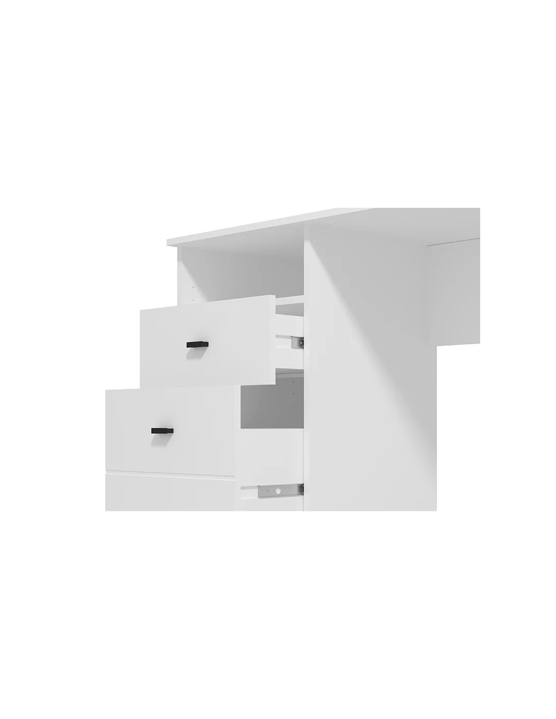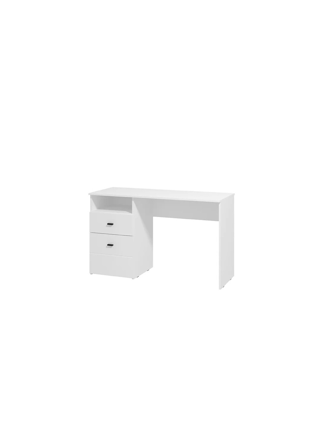 PC stol HIPATIA 2F, bijeloj boji, karakterizira minimalistički i moderan dizajn. Osim radne površine, iskoristivi prostor sastoji se od dvije ladice - od kojih je jedna dublja, kao i jedne otvorene police, koje omogućuju pregledno i funkcionalno skladištenje. Zahvaljujući kompaktnim dimenzijama i neutralnoj estetici, HIPATIA 2F stol je neizostavan element za funkcionalno i pregledno uređenje radnog prostora.