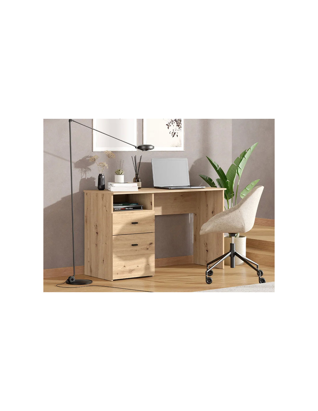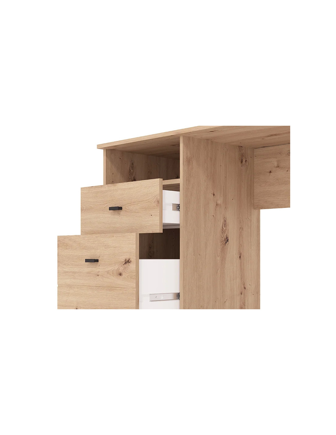 PC stol HIPATIA 2F, u dekoru artisan hrasta, karakterizira minimalistički i moderan dizajn. Osim radne površine, iskoristivi prostor sastoji se od dvije ladice - od kojih je jedna dublja, kao i jedne otvorene police, koje omogućuju pregledno i funkcionalno skladištenje. Zahvaljujući kompaktnim dimenzijama i prirodnoj estetici dekora drva, stol HIPATIA 2F neizostavan je element za funkcionalno i pregledno uređenje radnog prostora.