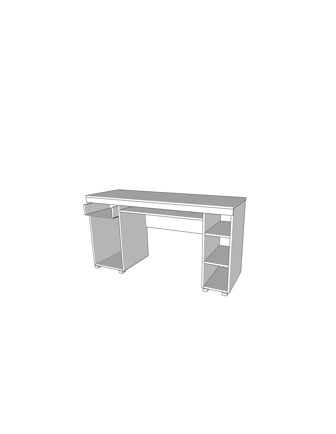 Ozbiljan stol za ozbiljne projekte - sa policom za tipkovnicu koja se izvlači i ladicom i zatvorenom policom za maksimalnu iskorištenost prostora za odlaganje. Sa druge strane se nalaze otvorene police za odlaganje i kućišta računala.