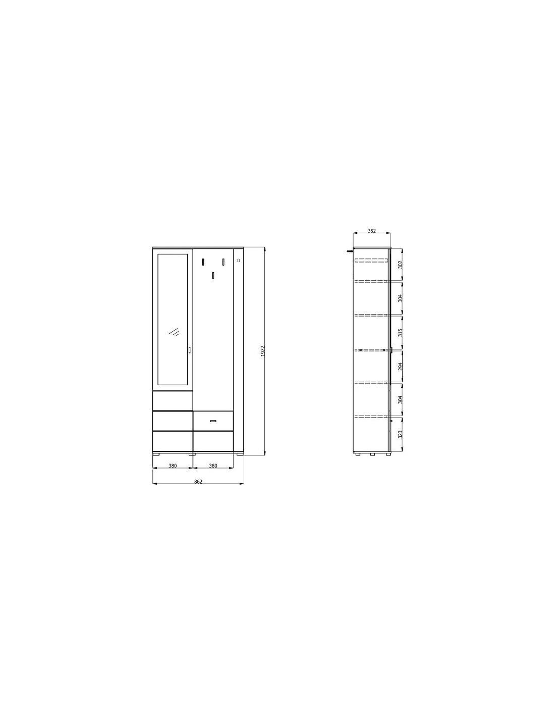 Š 86 cm / D 35 cm / V 197 cm