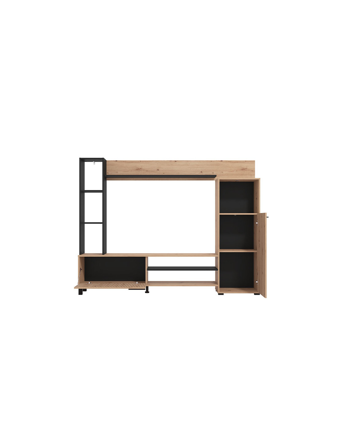 Regal RETIMNO, u kombinaciji dekora artisan hrasta, artisan hrasta sa prugama, kao i crnog dekora, dizajniran je da zadovolji funkcionalne i estetske zahtjeve u uređenju svakog ambijenta. Kompaktnog dizajna, regal RETIMNO omogućuje praktično opremanje dnevnog boravka, zahvaljujući upotrebnom prostoru koji čine otvorene i zatvorene police za odlaganje, kao i prostor predviđen za TV uređaj 130x33x112 cm (do 58") i ostalu audio-vizuelnu opremu.