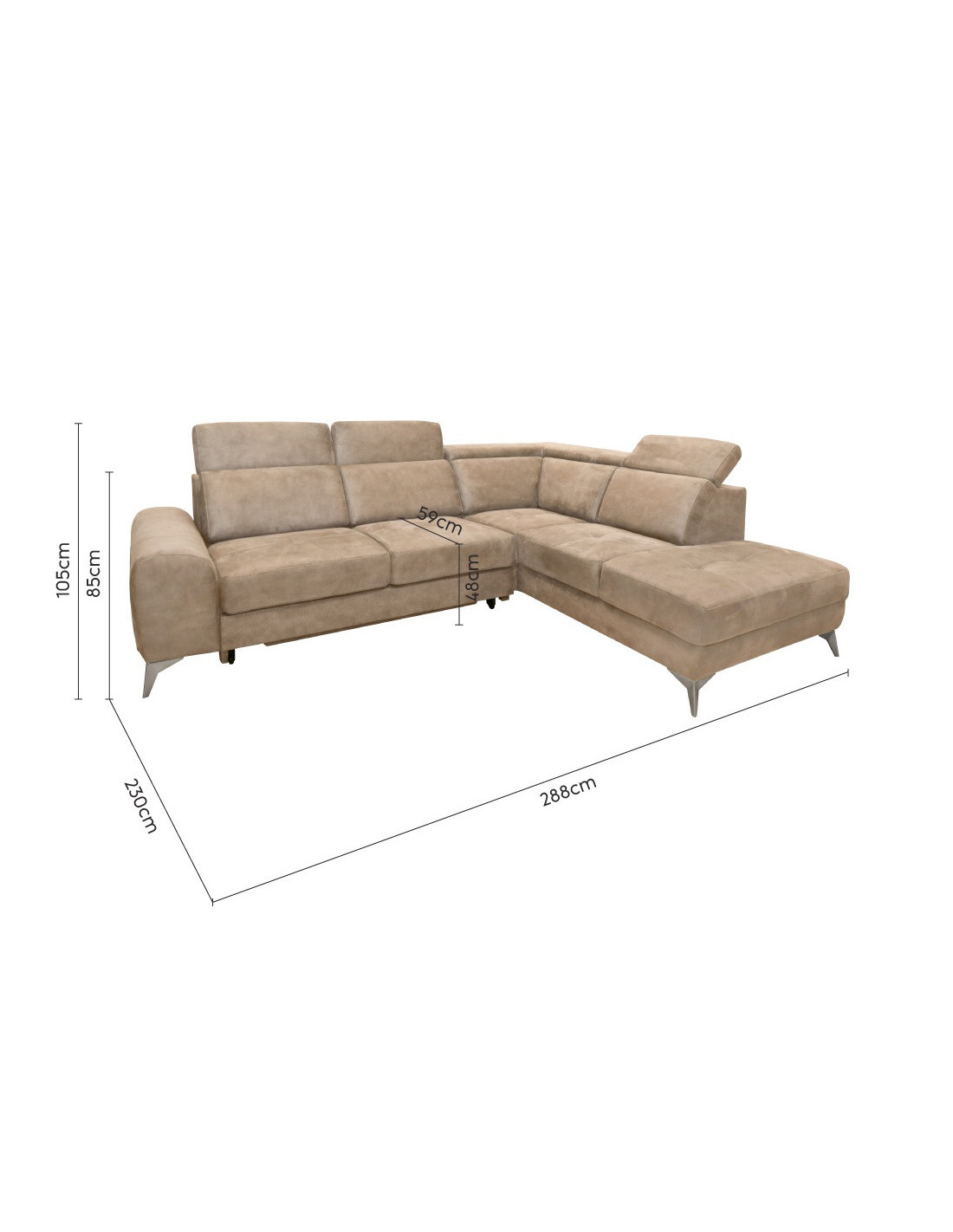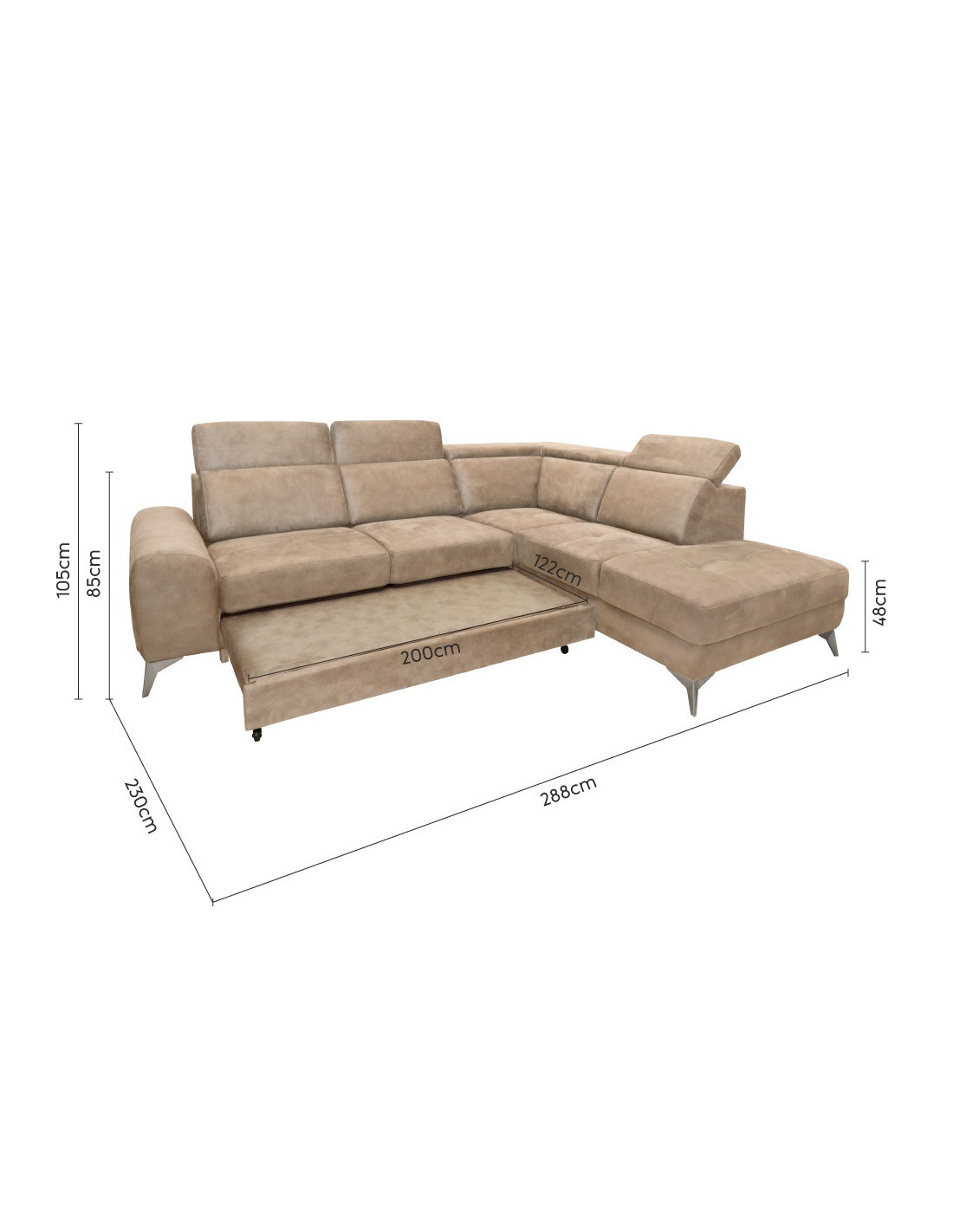 Š 288 cm / D 230 cm / V 85 cm
