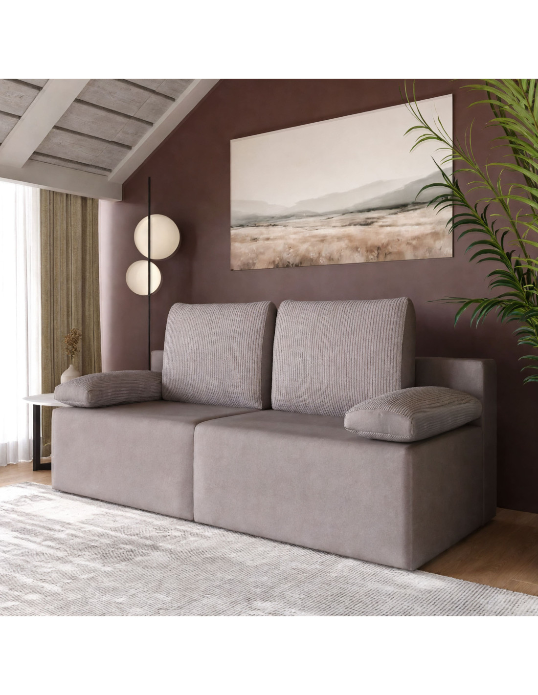 Krevet Lima karakterizira prekrasan dizajn, izvrsna kvaliteta izrade i primijenjenih materijala te visoka razina udobnosti za sjedenje i spavanje. Svaka linija, pažljivo odabrani materijali i završna obrada pažljivo su dizajnirani kako bi dodali vrijednost proizvodu i estetski i funkcionalno. Svedene linije samog trosjeda i moderan dizajn jastuka omogućuju da se ova vrsta trosjeda uklopi u različite stilove života i prostorne zahtjeve. Odabir trosjeda Lima inteligentan je izbor za one koji traže optimalnu kombinaciju stila i korisnosti. Idealan je za manje prostore, dječje sobe i svaki intimniji prostor kada želite da dom izrazi svoju jedinstvenu priču.