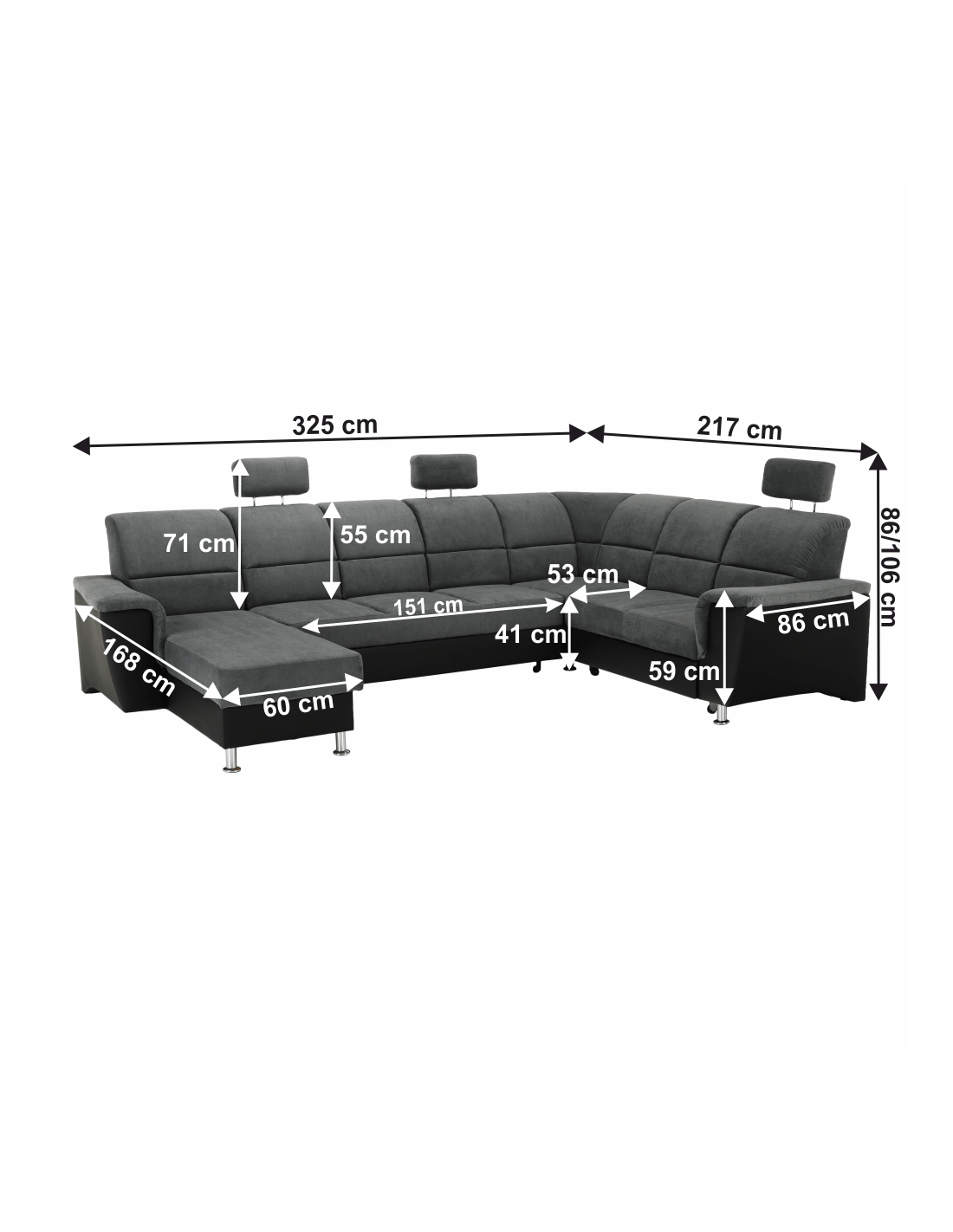 Pogledajte izbliza sofu SANTIAGO. Neponovljiv izgled, jedinstveni dizajn i zajamčena udobnost. Naš dragulj među sofama može se pohvaliti svime time. Zahvaljujući jedinstvenom dizajnu u tamno sivoj Matrix tkanini i crnoj eko koži, lako će postati dio svakog dnevnog boravka. Sofa je u popularnom U-obliku. Funkcija sklapanja i skriven prostor za pohranu također je čine iznimnom. SANTIAGO se rasklapa pomoću ručnog sustava, tako da ne treba puno truda za rasklapanje. U osnovi, rasklapate je s dva poteza. Prvim potezom podižete i pomičete sjedalo prema naprijed. Drugim preklapate naslon i dobivate prostor za spavanje. Posebno oblikovani podesivi nasloni za glavu također će vam pružiti maksimalno opuštanje. Možete ih nagnuti naprijed ili natrag ovisno o tome koliko vam je udobno. Zahvaljujući činjenici da je potpuno tapecirana, možete je postaviti bilo gdje u prostoru i pustiti da se njena ljepota ističe sa svake strane. Punjenje od falista opruge i pur pjene također će doprinijeti savršenom opuštanju. Garnitura SANTIAGO je upravo ono što tražite. Jedinstvena s atraktivnim dizajnom i preciznom izradom.