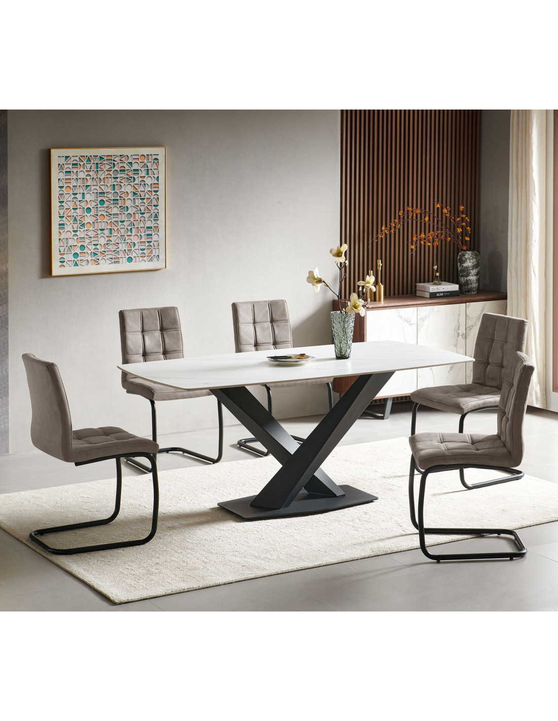 Metalna baza u obliku saonica presvučena je mat crnim praškastim premazom za bolju otpornost na habanje i utjecaje okoline. Dizajn saonica također nudi vrhunsku stabilnost, stvarajući glatku ravnotežu između oblika i funkcije. S maksimalnom nosivošću od 120 kg, ova stolica je pouzdana i prikladna za svakodnevnu upotrebu i širok raspon korisnika.