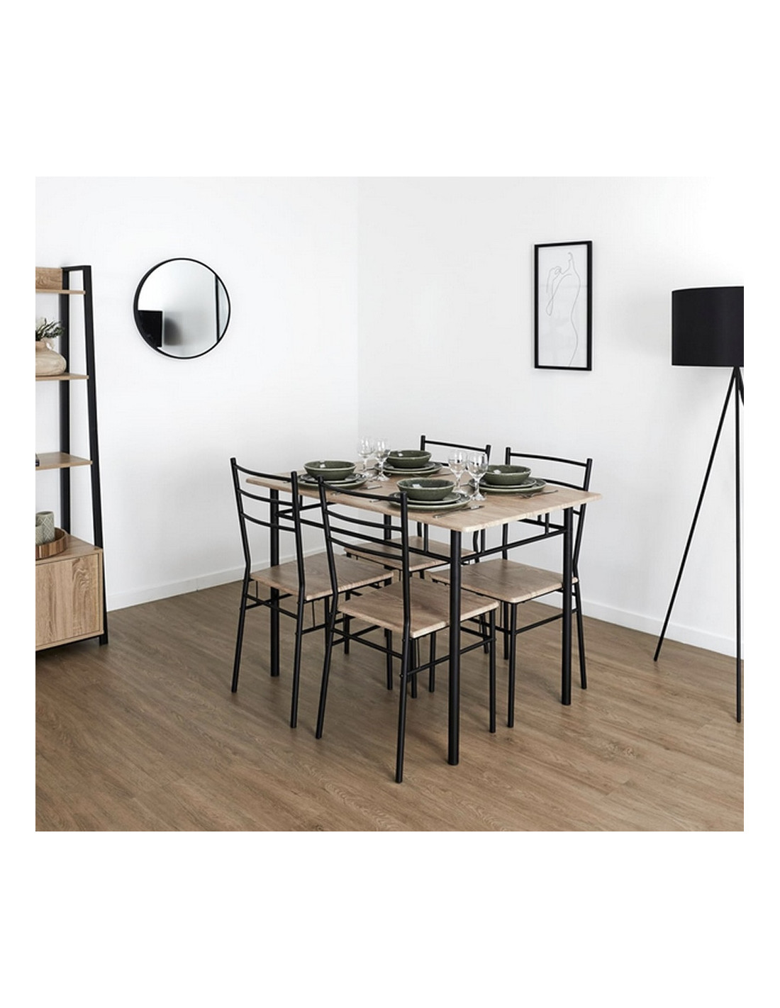 Stvorite ugodno mjesto za obiteljsko vrijeme uz objedovanje uz blagovaonski set MAKO. Set uključuje jedan stol i četiri stolice u kombinaciji boja sonoma hrasta i crne. Metalna konstrukcija nadopunjena visokokvalitetnim MDF-om osigurava stabilnost. Kombinira moderan dizajn s funkcionalnošću i udobnošću, što ga čini prikladnim dodatkom svakoj kuhinji ili blagovaonici. MAKO je odličan izbor za sve koji traže kombinaciju kvalitete, estetike i funkcionalnosti.