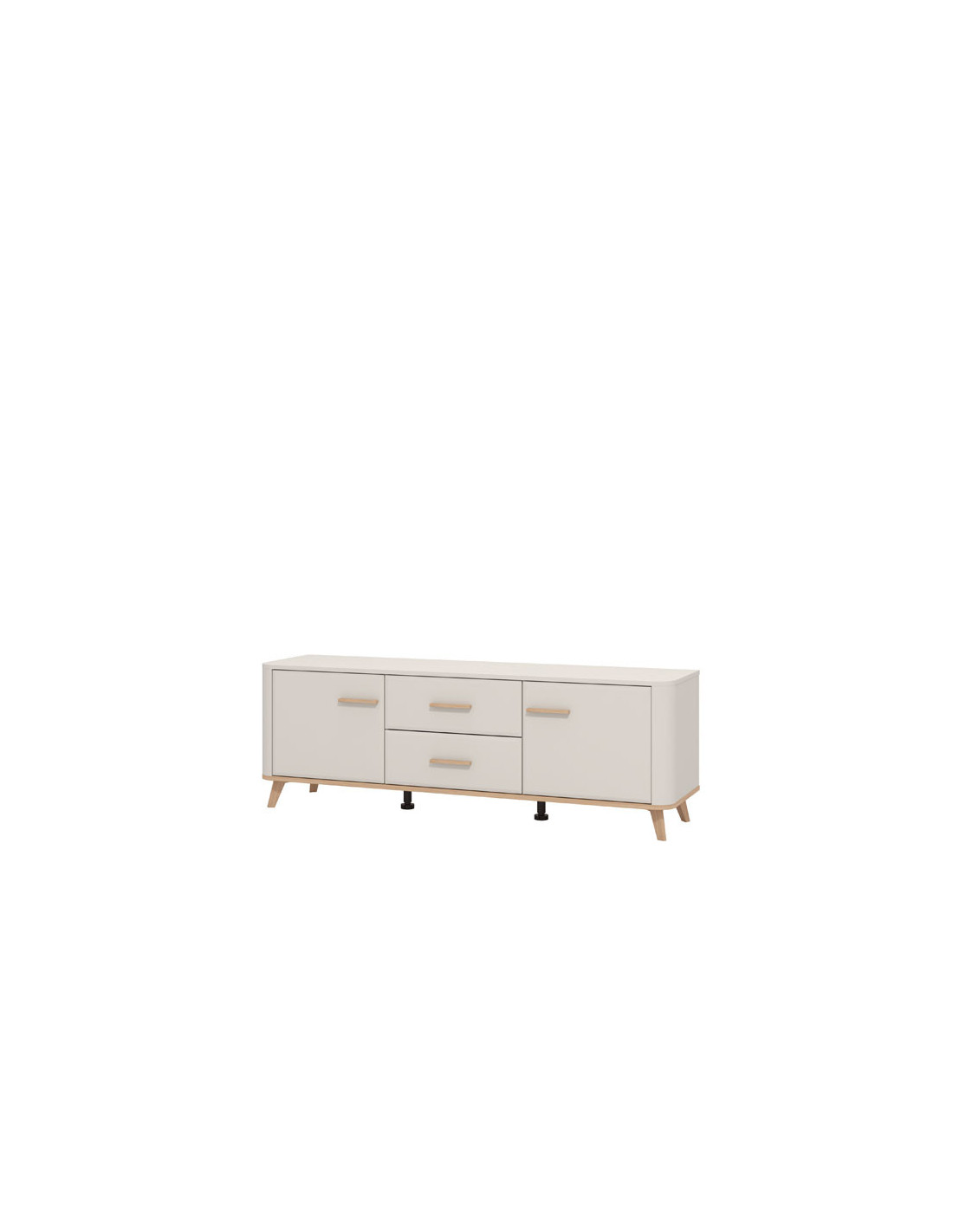 TV polica DARWEN TV 154 3K2F2V u kombinaciji dekora kašmira, dekora artisan hrasta i kašmirske mat folije atraktivno je rješenje za sve ljubitelje modernog uređenja interijera. Dobro raspoređen iskoristiv prostor sastoji se od dvije zatvorene pregrade i dvije ladice. Dio je DARWEN element sustava za opremanje dnevnog boravka, koji svojim zaobljenim rubovima na elementima i visokim nogama doprinose atraktivnosti moderno dizajniranog interijera.