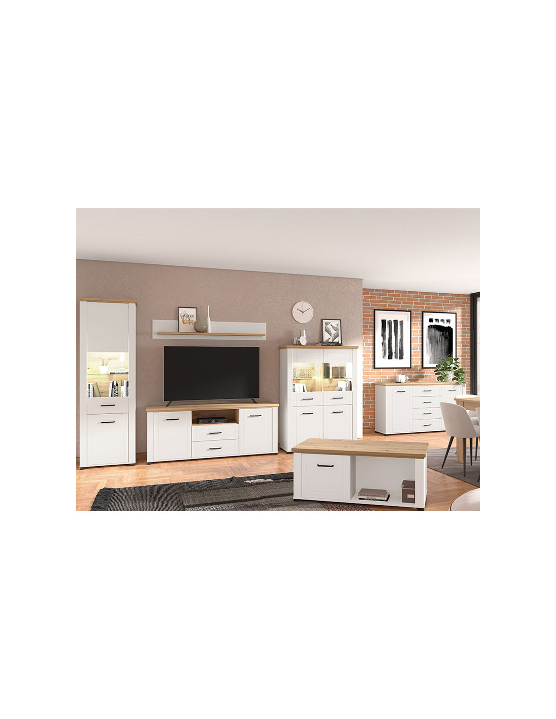 Vitrina VALENCIA 2K VS2 u kombinaciji dekora artisan hrasta, neprozirne bijele i bijele mat folije dizajnerski je atraktivno rješenje za uređenje dnevnog boravka koje daje topliju estetiku interijeru. Korisni prostor sastoji se od dva zatvorena i dva ostakljena dijela koji u sebi imaju praktično raspoređene police za odlaganje stvari. Fronte su obogaćene crnim ručkama jednostavnog dizajna koje su u skladu s dizajnerskom linijom cijele kolekcije.
