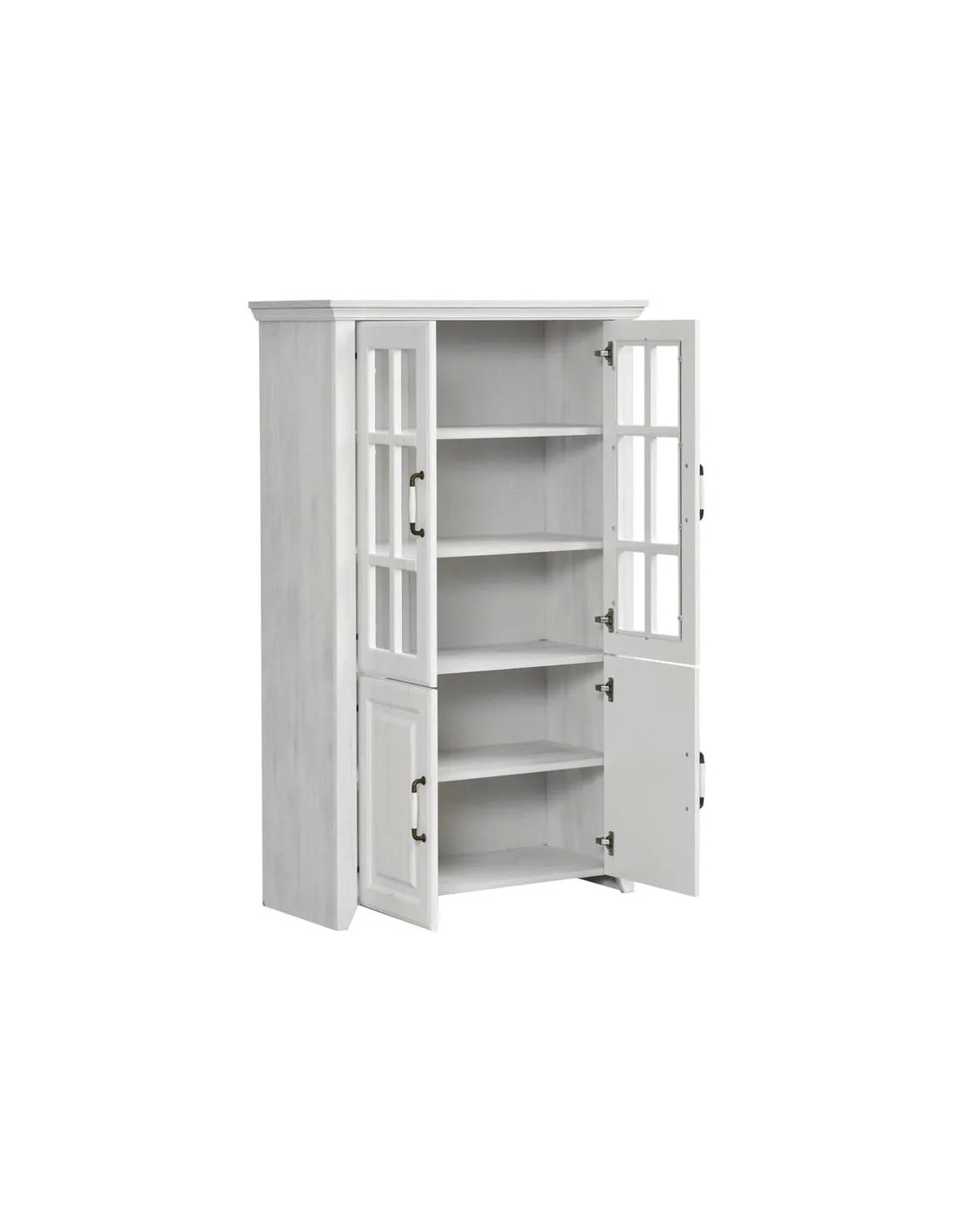 Set Rustic savršen je izbor za one koji traže namještaj autentičnog i rustikalnog dizajna. Staklena vitrina niskog, modernog i elegantnog dizajna uklopit će se u vaš dnevni boravak, hodnik ili spavaću sobu. S dimenzijama 90,5 × 40,6 × 147,8 cm, savršen je izbor za komad namještaja koji će učinkovito iskoristiti prostor u vašem domu. Staklene ploče na gornjim vratima doprinose otvorenijem i prozračnijem izgledu ovog komada namještaja.